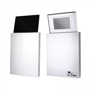 产品特点: ● 升降器和屏转轴式连接一体呈现,无背板连接,无螺丝外露。整体简洁,高贵大气,彰显尊贵品质;升降器与屏幕独立设计与运输(屏幕与升降器可拆分,FPC软排线金手指连接)。保证运输,性能稳定,维护安全便捷。也可独立升级。 ● 材质工艺:屏幕及升降器面板采用全铝合金外壳,整体CNC设计,精雕细琢一体成型,喷砂阳极氧化处理。产品颜色:拉丝黑/银 喷砂黑/银(可定制其它颜色)。 ● 主屏屏幕尺寸采用15.6英寸液晶屏;分辨率:1920*1080;屏幕视角:IPS全视角屏 ;触摸屏类型:磁感电容屏,10点触控;显示比例:16:9 ;亮度:300流明;静态对比度:6000:1, 升降发言单元,一体...