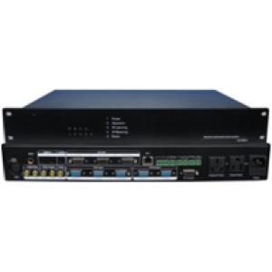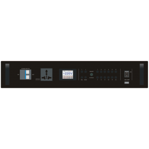采用 12 路万能插座输出继电器 AC220V,13A.,30A 。配备 RS232/,RS232/RS485/. 外部 IO 接口 , , 满足中控与 PC 机控制 IO 、 RELAY 及纯开关红外开放控制协议配备 EMG_IN 24V 紧急接口,