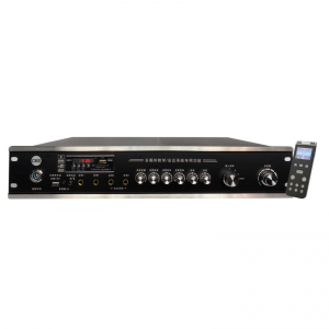 产品特点: 功放: ● 功率:60W×4 150W×4; ● 标准2U机箱,豪华铝合金面板;面板标识图标或字符均采用激光雕刻工艺,永不掉图标和字符,杜绝采用丝印工艺; ● 4路音频输入(2路RCA输入,2路3.5立体声输入,3路后置,1路前置);4路6.35话筒输入(2路带幻象电源,接同品牌会议话筒可不用电池供电;2路不带幻象电源,可接普通话筒);2路3.5立体声输出,可接录播系统、录音设备、桥接输出另一台功放;A组与A+B组功率输出;1路RS232接口,可接中控本地控制或远程控制,能控制声音大小及静音;后置1路USB接口;前置1路USB充电接口;可选1路红外对频接收端口; ● 3路校园广播紧...