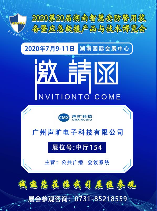CMX-声旷科技-2020年湖南安博会-7月9日至11日