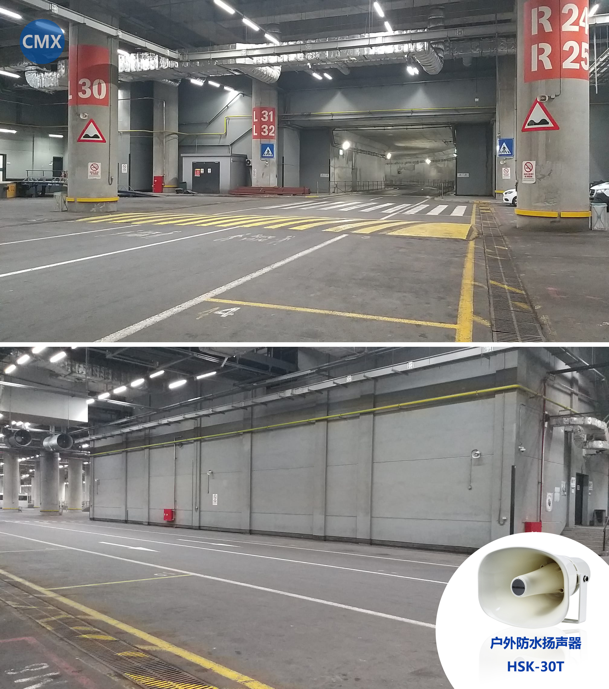 根据地下停车场应急广播的需求,每条水泥柱上都选用了CMX的防水扬声器(HSK-30T)。