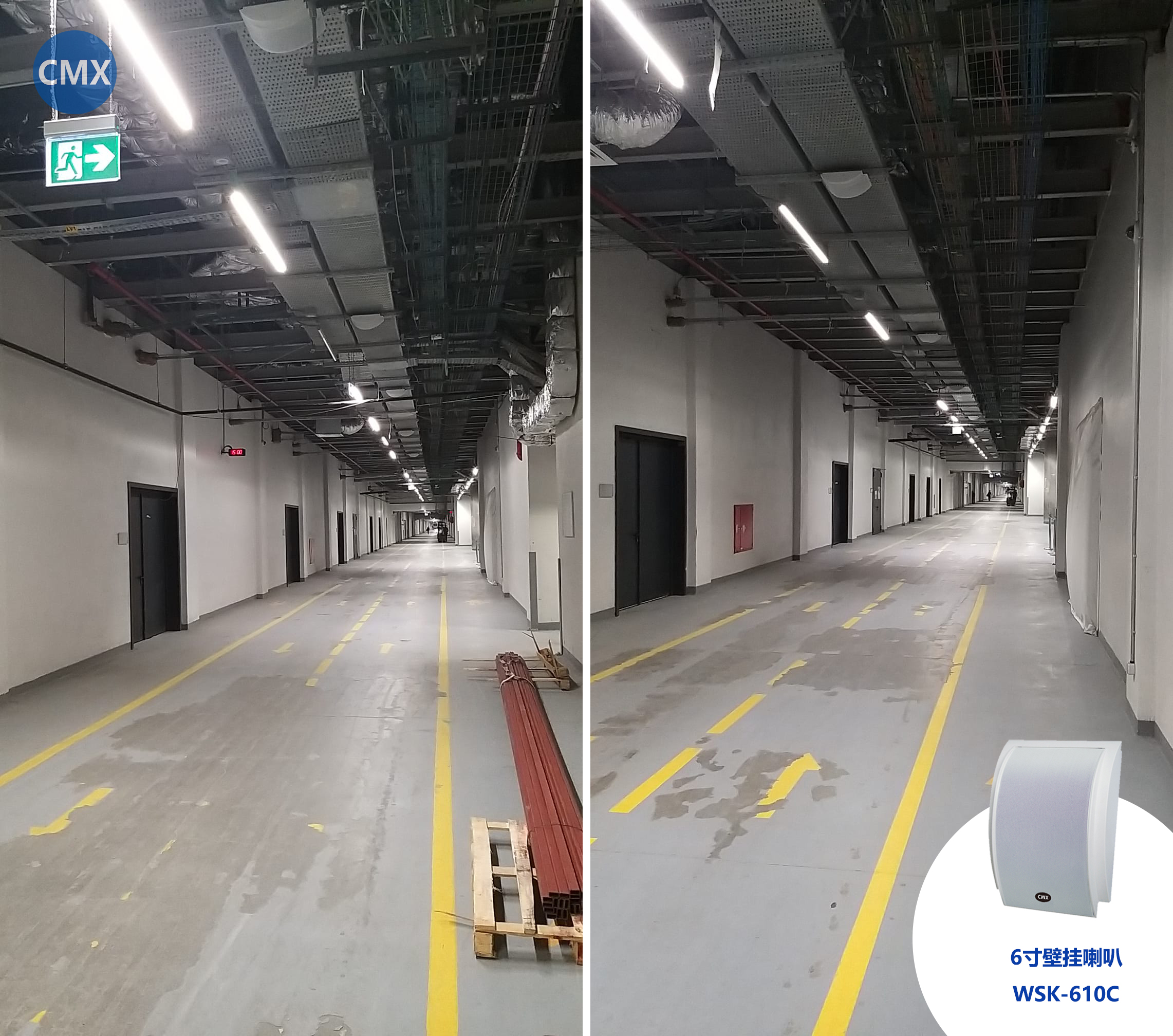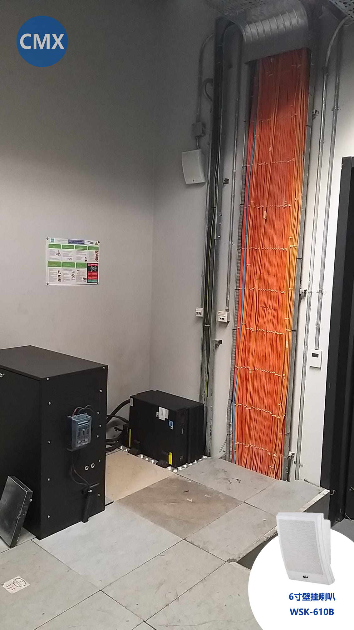 根据地下停车场的通道天花板特点,选用了CMX的6寸壁挂式喇叭(WSK-610C)。