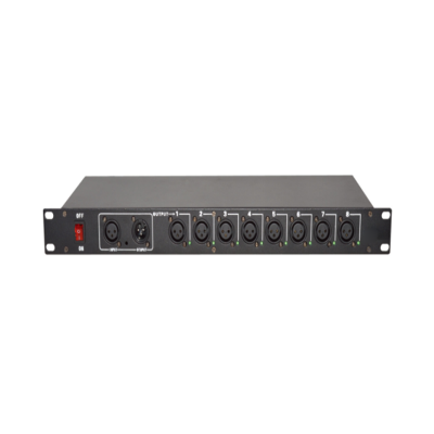 DMX8路信号放大器是采用最新光电隔离技术,达到国际先进水平,输入输出每路都是采用独立的变压器供电,八个光电隔离信号放大来扩大DMX信号输出 ,放大功能可以令连接延长超过标准的DMX512长度. 外观设计轻便,结构坚固,减少问题再发生.是舞台电脑灯,LED灯,灯控台的最佳搭档。