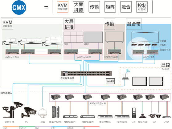 HOAVS分布式综合系统融合了KVM坐席协作、可视化管理、影像切换、大屏拼接、远距离传输、音视频矩阵、投影融合带、环境量、控制管理等强大系统功能。在同样的功能应用场景下,标准化、数字化、网络化、跨地域的HOAVS分布式综合系统可为您的项目减少设备配置、去中心化设计、简化系统和线路、自由部署调度,无论是一个房间、一栋楼、一个园区或者N个省市级,都可实现信号的随时共享、分发,打破地域限制,构成高效率协作、提升决策能力,同时也获得了颠覆性的用户体验。