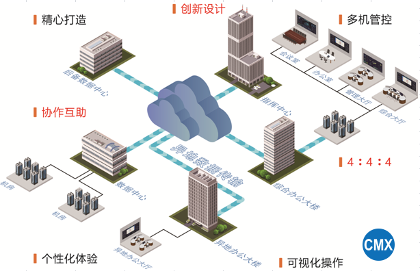 不受带宽 . 规模 . 地域限制,一网承载 . 一键管控 . 多样功能 . 多入多出. 音视频同步.融合无纸化会议和分布式一体控制