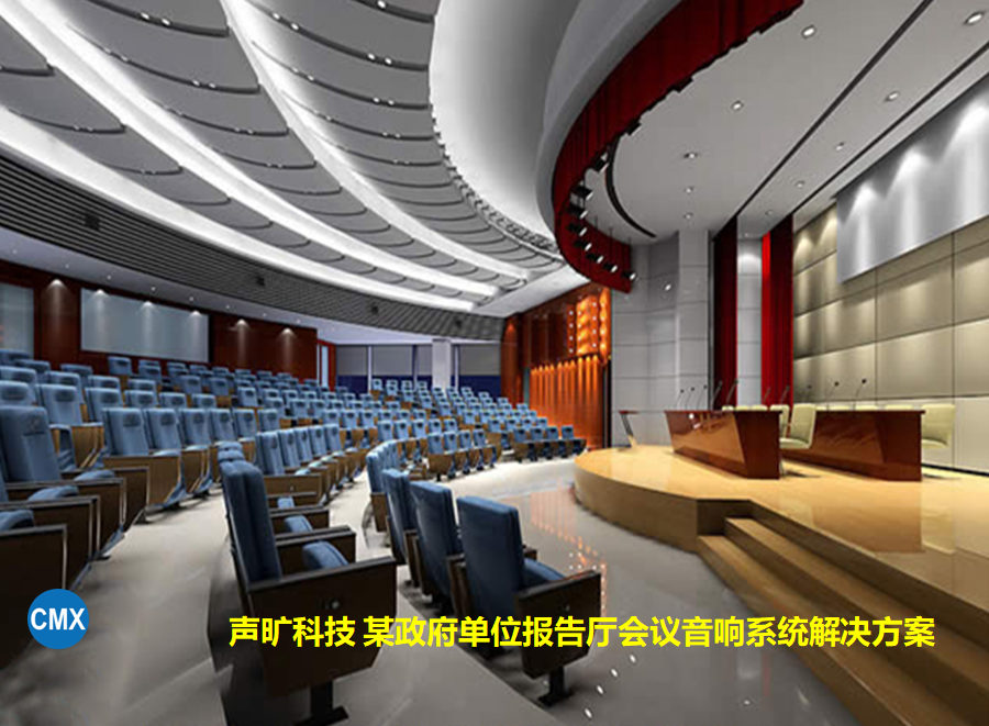 报告厅音响工程项目为多媒体会议音响扩声系统,工程主要有1间大会议厅,面积500平方米,可容纳300到400人的大型会议室。该工程项目多媒体会议室主要要求满足日常会议语音扩声、学术报告、学习培训等功能。该会议室平面图、会议室透视图和会议室正侧立面效果图见下面: