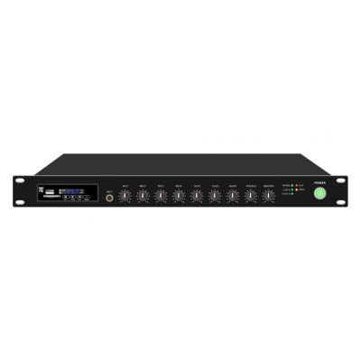产品特点: ◆ 集成MP3(USB,SD卡)/调谐器/蓝牙音乐模块 ◆ 提供优先级选择:MTUE>MIC1>EMC>其它 ◆ 提供两路AXU输入,三路MIC输入,一路EMC,带MUTE短路触发功能 ◆ 合并式数字广播功放机具有多种功率款式选择,支持100V或4-16欧姆输出,便捷式架构,单台设备便可满足喇叭连接使用,完美的解决了成本以及操作复杂化的问题,广泛应用于小型商超、健身房和图书馆等场景。