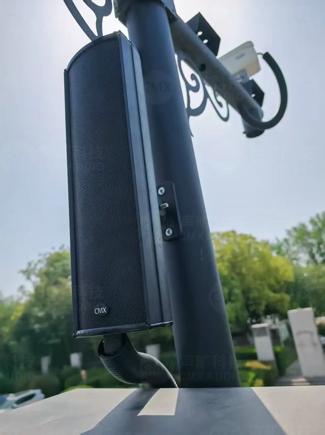 CMX团队技术人员现场精准调试,确保音柱在复杂户外环境下稳定运行。IP66级防水防尘、耐候性强,无论是烈日风雨,音质始终清澈透亮;定向发声技术让声音均匀覆盖,避免扰民,实现“声景融合”。