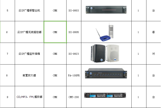 6、园区网络广播系统配置有多种节目音源,如CD播放器、MP3播放器、数字收音机等设备,满足园区多样化广播需求。也可以利用网络,同时播放多套节目。