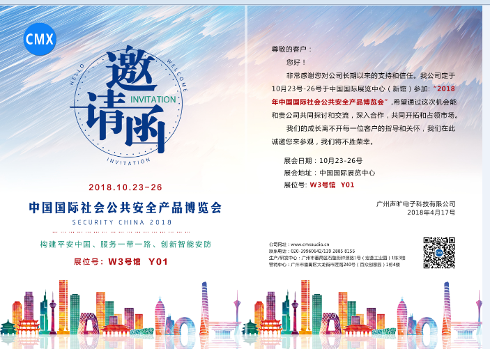 2018年第十四届中国国际社会公共安全产品博览-CMX精品广播会议-展位号: W3 Y01