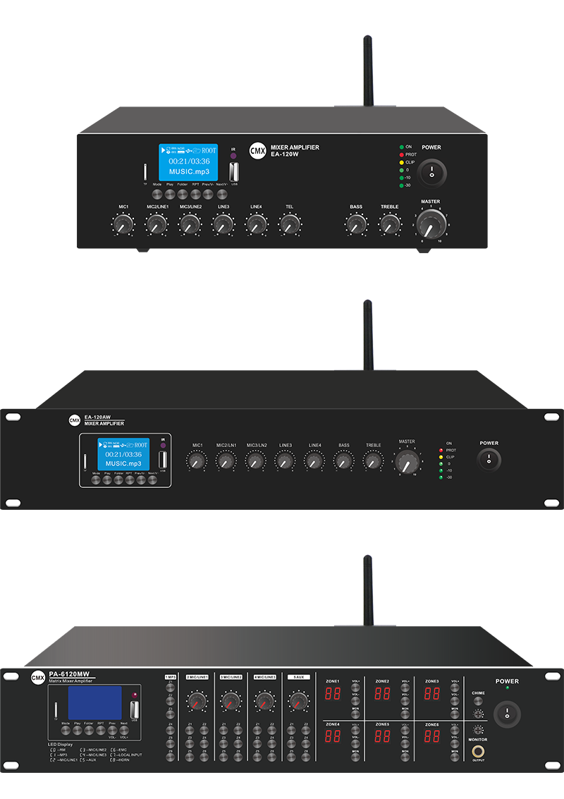 我们具有多种款式WIFI功放以及搭配使用的寻呼话筒、控制面板满足不同场景的功放需求