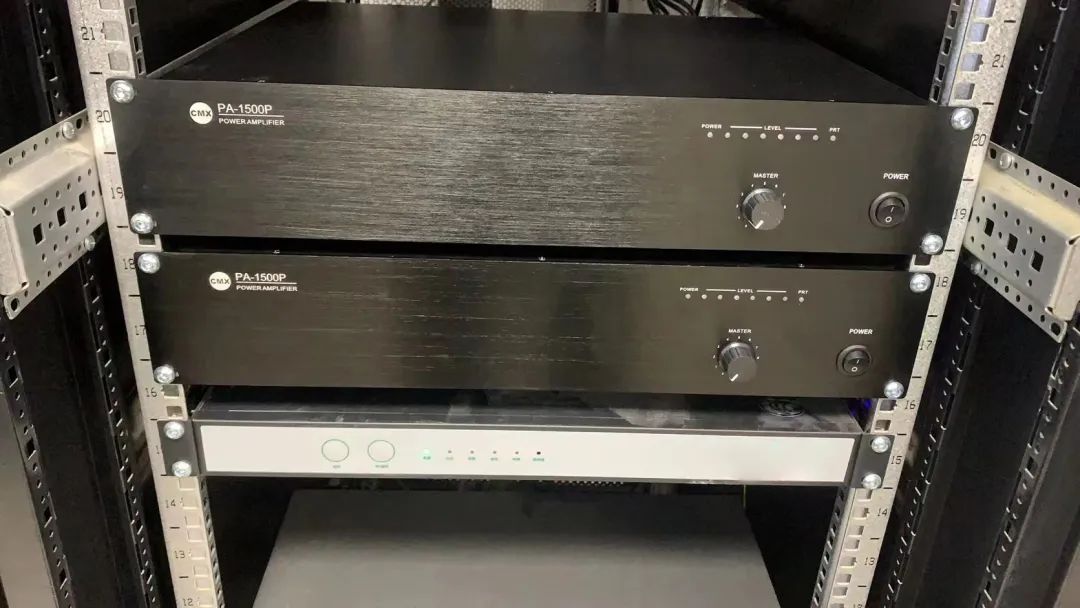 5.系统喇叭需要功放来驱动,系统音频通过前置放大器放大混音处理后输出给纯后级功放,再由功放来驱动喇叭扩音,功放主要采用单通道、二通道或者四通道的纯后级功放。