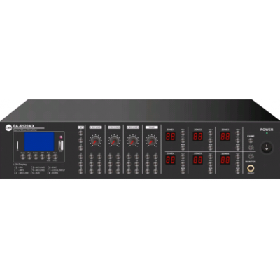 ◆ 额定输出6*120W,100V或8-16欧姆ZONE1-6 独立的音量控制信号通道输出