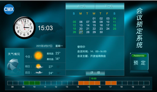 说明:用于会议室门口的标牌,显示该会议室当天的会议情况。