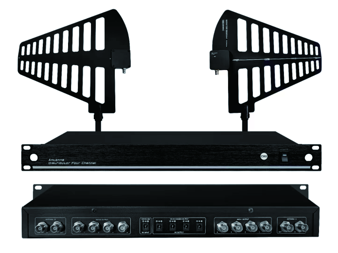 ◆ 可提2~4台UHF无线系列或其他系列各种自动选讯接收机的多频道系统,共用一对天线。