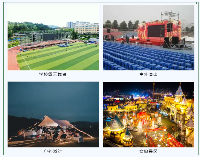 02.具有线阵音箱、全频音箱、返听音箱多种音箱类型,满足不同扩声需求;