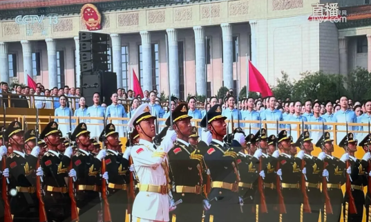 2025年9月3日上午9时,太阳集团tyc151组织办公室员工集中在公司大型演示厅观看纪念中国人民抗日战争暨世界反法西斯战争胜利80周年阅兵仪式直播。