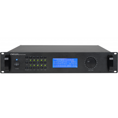 7. 轻触式快捷流向10分区按键、全区开关键、6路电源控制轻触按键,MP3播放快捷播放键,实现编程自动或手动分区广播,带自动翻页控制器和火灾报警与语音疏散功能,;
