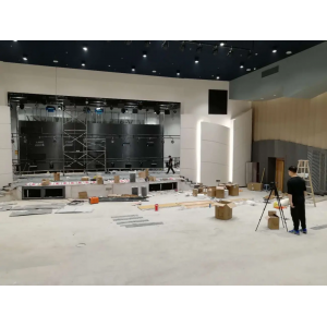 本次教室录播系统案例要装修的录播教室总面积为158平米,录播教室长度为12.93米,宽为8.94.观摩室长度为6.35米,宽度6.7米,高度2.8米。结合对该企业实地现场考察,出具详细录播教室装修方案。具体装修要求将原教室隔离为两间教室,一间为录播教室上课区域,一间为观摩室。两室墙体隔断内安装吸音棉板,外层石膏板封面。隔断中间观摩墙采用1.2m*4m单向厚度为5毫米钢化玻璃。教室顶部采用钢龙骨吊架,矿棉板天棚吊顶,矿棉吸音板厚度为3~5毫米。录播教室内加装双层隔音窗,有效阻断外界杂音干扰。隔音窗上方加装窗帘盒,窗帘要求防静电双层隔音。墙体表面加装木质吸音板,以蓝色或红色为准。地面铺设防静电地毯。讲台区域铺设木地板。